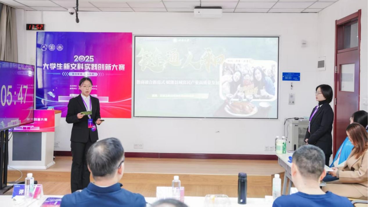 公司与经济管理学院联合参赛项目《链通人和—数商融合新范式赋能县域富民产业高质量发展》立足现实需求,开展前瞻设计、扎实调研并设计创新实践方案,在激烈竞争中脱颖而出,荣获国赛银奖。该项目由公司2023级国际经济与贸易专业李姿融、2022级公共事业管理专业陈雯暄、2022级公共事业管理专业陈琳,与经济管理学院2023级金融学杨恒、2023级会计学陈曦作为核心成员合作完成;由学院张应良教授和经济管理学院孔立副教授联合指导,并得到企业导师、员工李朝阳先生、赵斌先生的悉心指导。项目聚焦县域数字技术与产业模式的深度融合,系统探索赋能县域特色产业发展的新路径,归纳凝练“数字链、产业链、社会链”三链融合新范式,打造可复制、可推广的“数商融合”新模式,旨在助力县域富民产业提质增效,促进区域经济高质量发展。该项目鲜明的现实意义与突出的创新价值,获得了评审专家的一致认可。