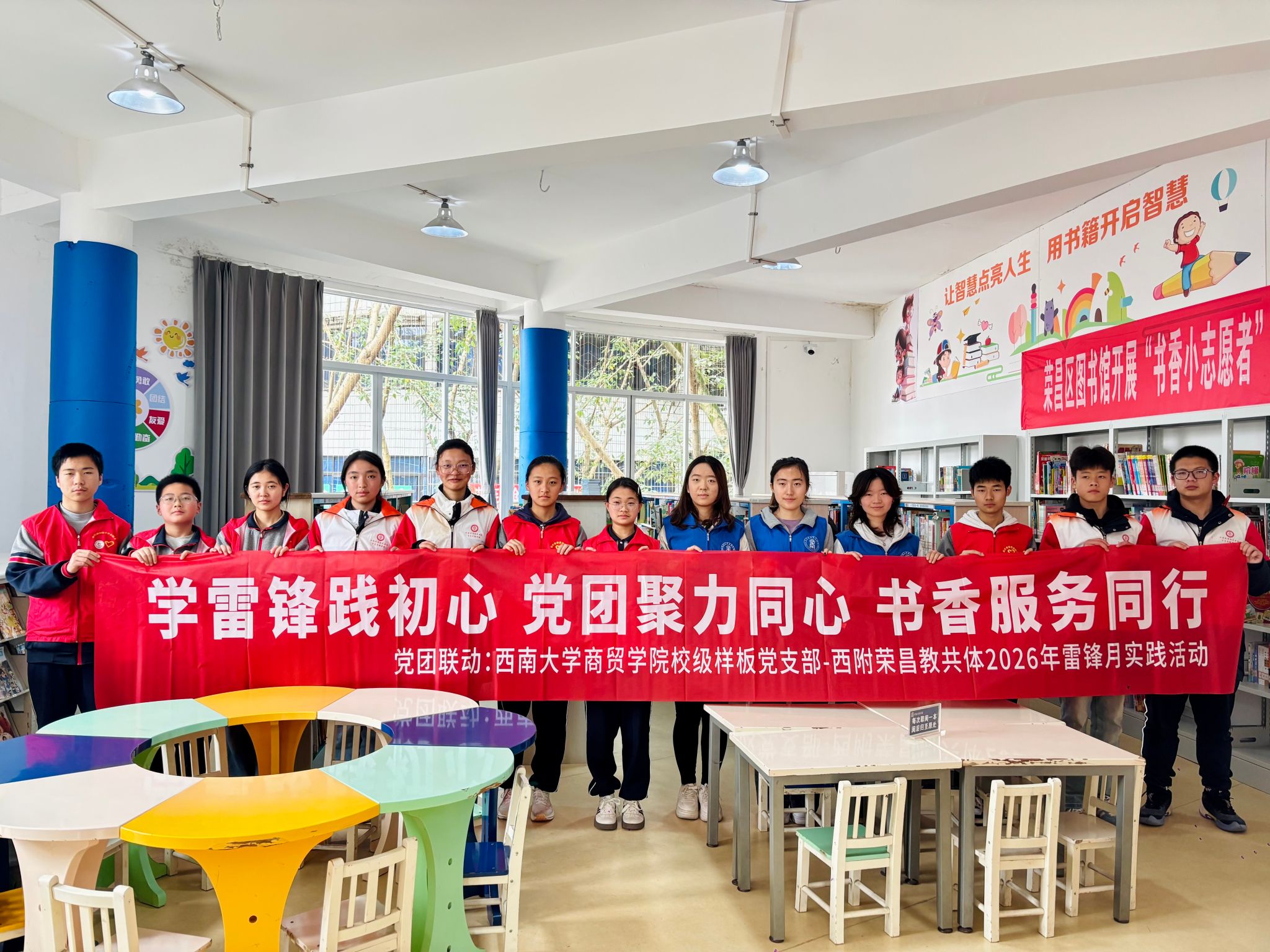 为大力弘扬雷锋精神和“奉献、友爱、互助、进步”的志愿精神,深化党团协同育人机制,充分发挥校级样板党支部的示范引领作用,3月25日,学院校级样板党支部与西附荣昌教共体联合开展雷锋月实践活动,以党团联动为纽带,以实践服务为载体,推动雷锋精神在青年群体中落地生根、薪火相传,实现党建引领、团建赋能、共育共进的良好成效。