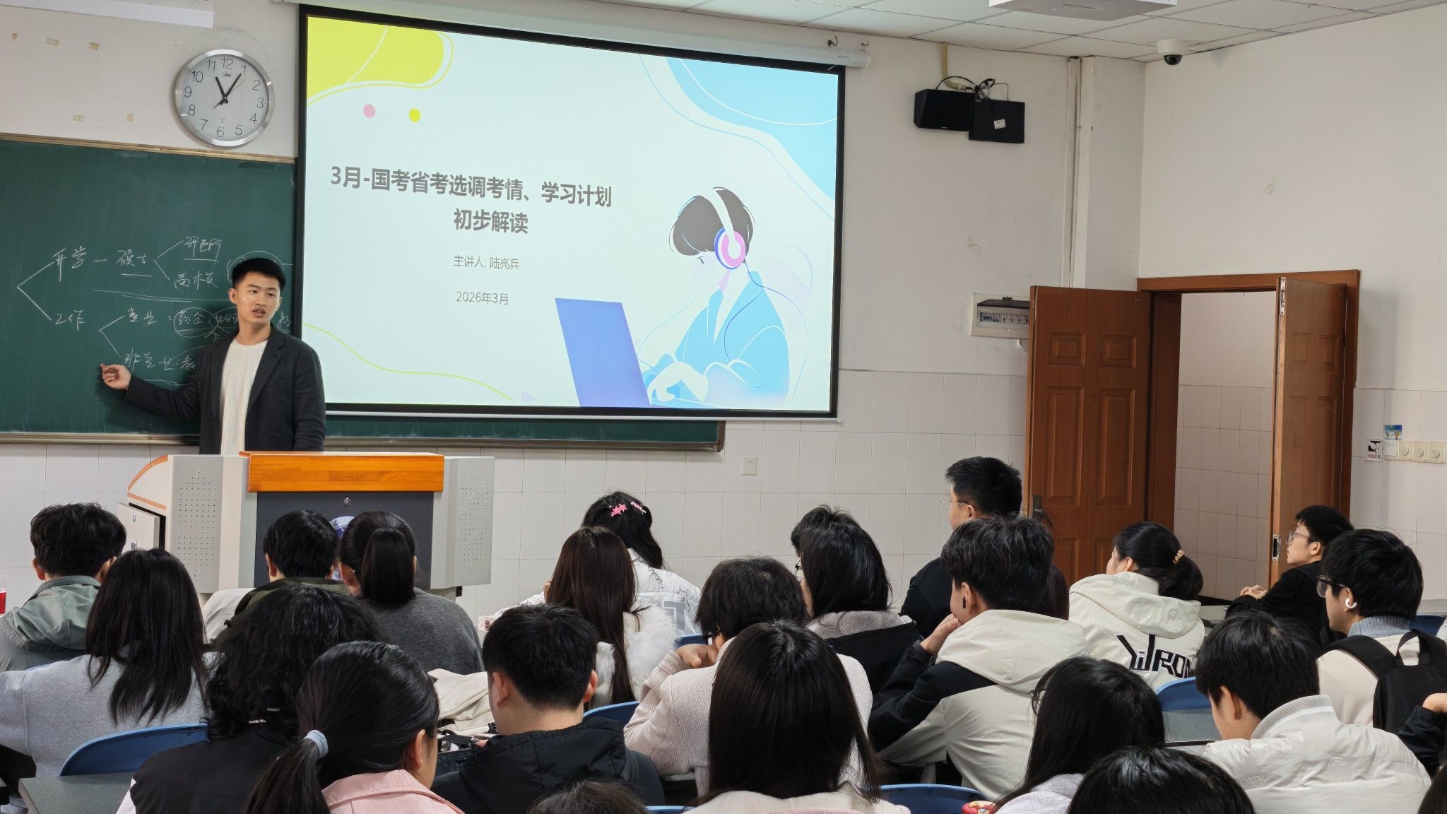 针对员工在考研、考公备考中存在的学习计划无序、择校择岗迷茫、备考资料筛选困难等现实困惑,学院本科生第二党支部充分发挥“领头羊”引领优势与组织凝聚力,于本月精心推出考研考公专题系列辅导讲座,切实为学子备考保驾护航。本次讲座由23级辅导员陆亮兵携手本科生第二党支部优秀党员共同主讲,结合当前研考公招考新形势、新政策及学院学科特色,聚焦备考规划、择校择岗、岗位分析等核心环节,分享实用备考计划与资料选择方法。此次讲座参与员工达260人次,现场互动氛围热烈,与会员工纷纷表示,讲座内容干货满满、针对性极强,有效帮助大家明晰了备考方向、理清了备考思路,为后续高效备考奠定了坚实基础。