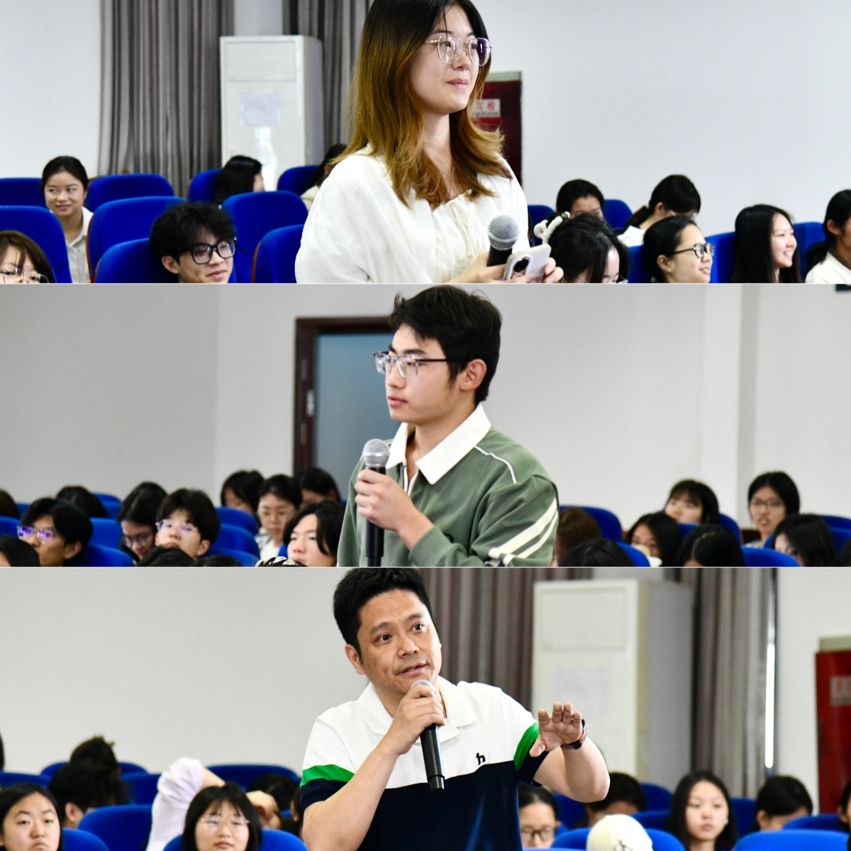 互动交流环节,在场员工围绕学业规划、职业选择与实习实践等方面踊跃提问,员工们依次回复,为同学们答疑解惑。本次故事汇构筑起员工与母校、学院深度联结的情感纽带,生动展现学院育人成效。