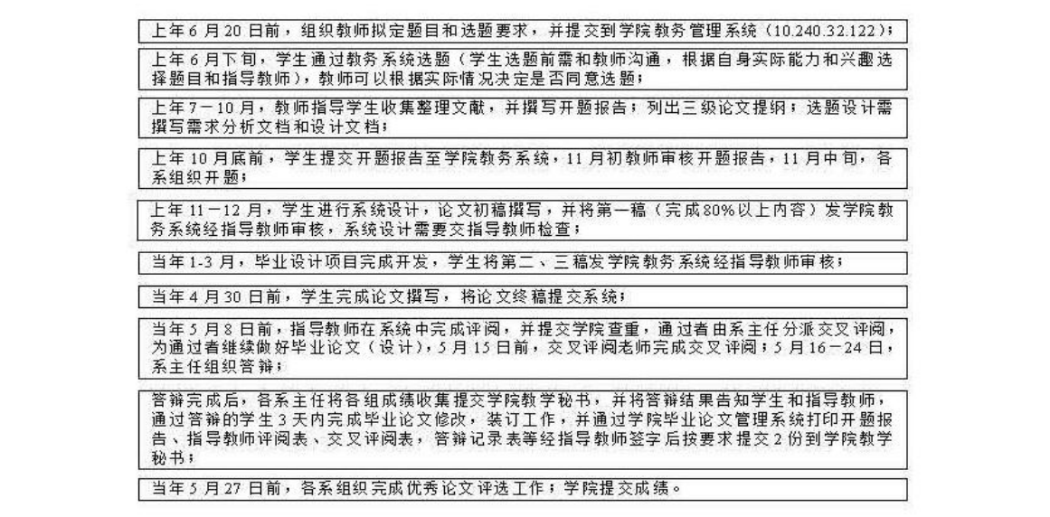第二条 毕业论文(设计)的时间应严格按照培养方案执行。