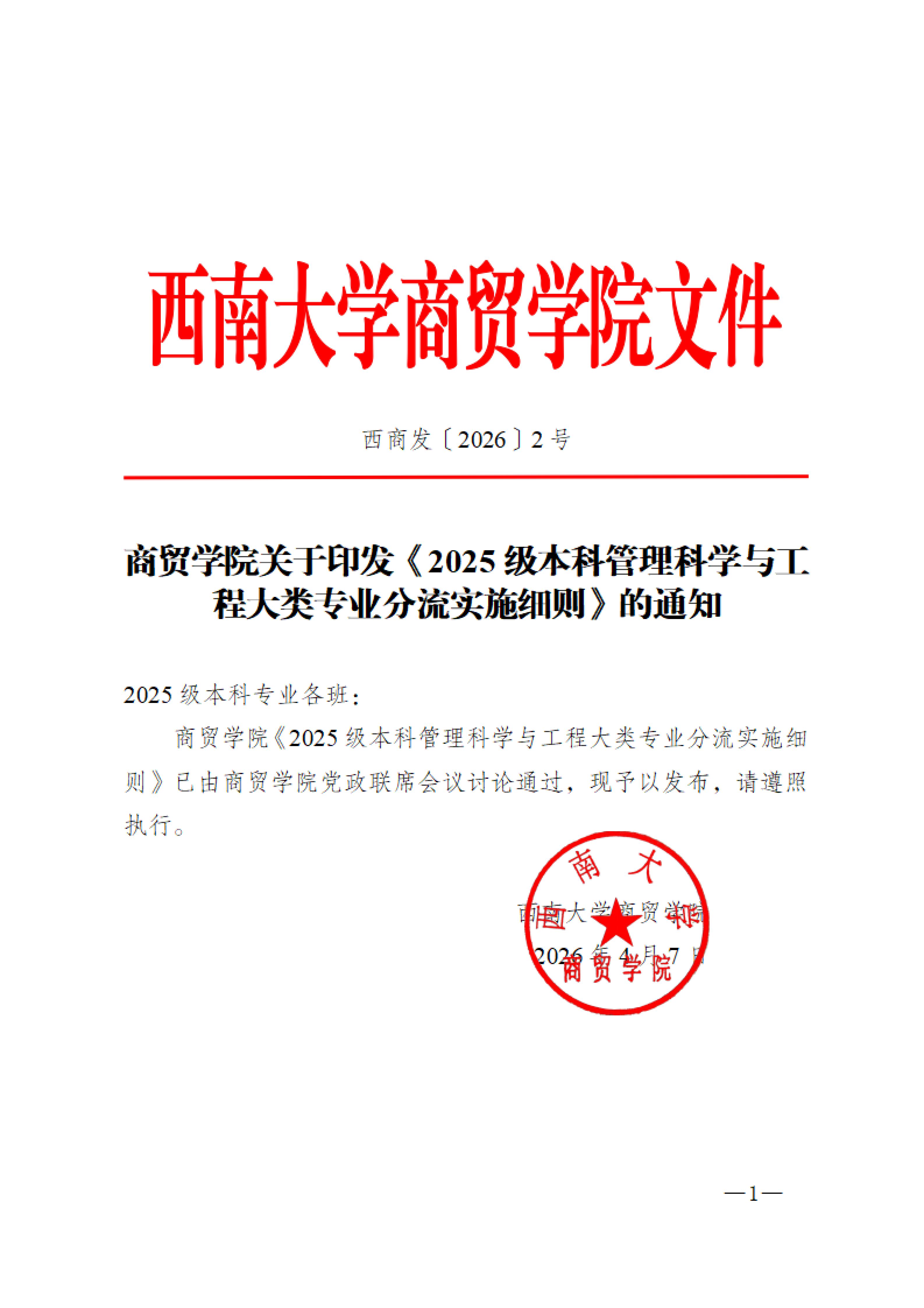 k1体育关于印发《2025级本科管理科学与工程大类专业分流实施细则》的通知