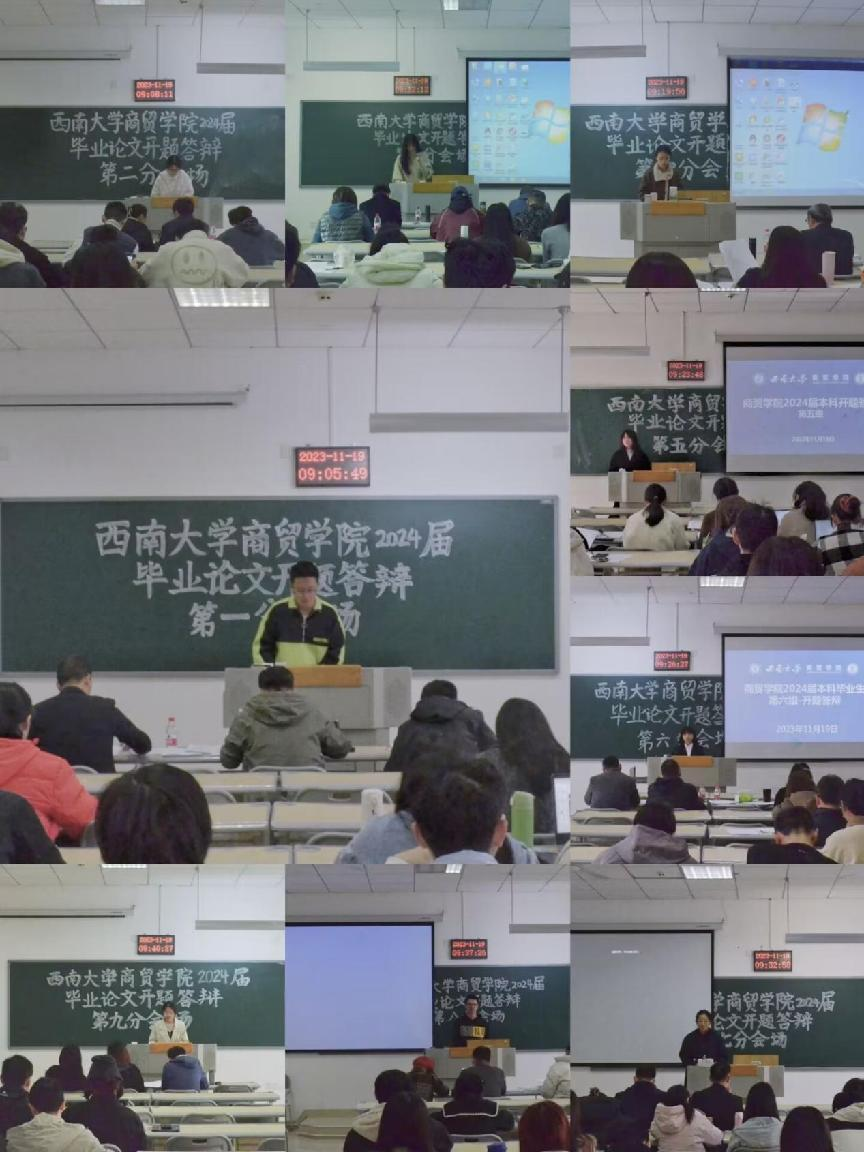 为切实抓好2024届本科毕业生毕业论文工作,确保本科毕业论文的质量,根据学院各专业人才培养方案,11月19日,商贸公司在第七教学楼顺利举行2024届毕业论文开题答辩会。本次开题答辩会涉及市场营销、公共事业管理、物流管理、国际经济与贸易、信息管理与信息系统五个专业,共安排14个答辩组。开题答辩组由教授、副教授担任组长,全体专任教师担任答辩成员,学院2020级共613名本科毕业生参加了开题答辩。