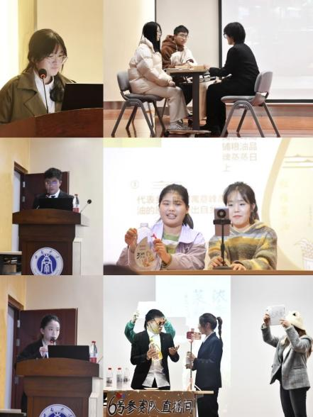 活动正式开始后,十组参赛队伍依次上台进行展示演说。选手们锐意进取,在实践中寻找真知,结合企业背景,分析相关市场实际情况,多角度看待、解决问题,条理清晰地阐述小组对产品的营销策划规划、定位分析,运用宣传图片及视频等多种方式,丰富地讲解了小组的营销策划方案,进行实际情况场景模拟,据策划方案回答在场评委的相关提问。