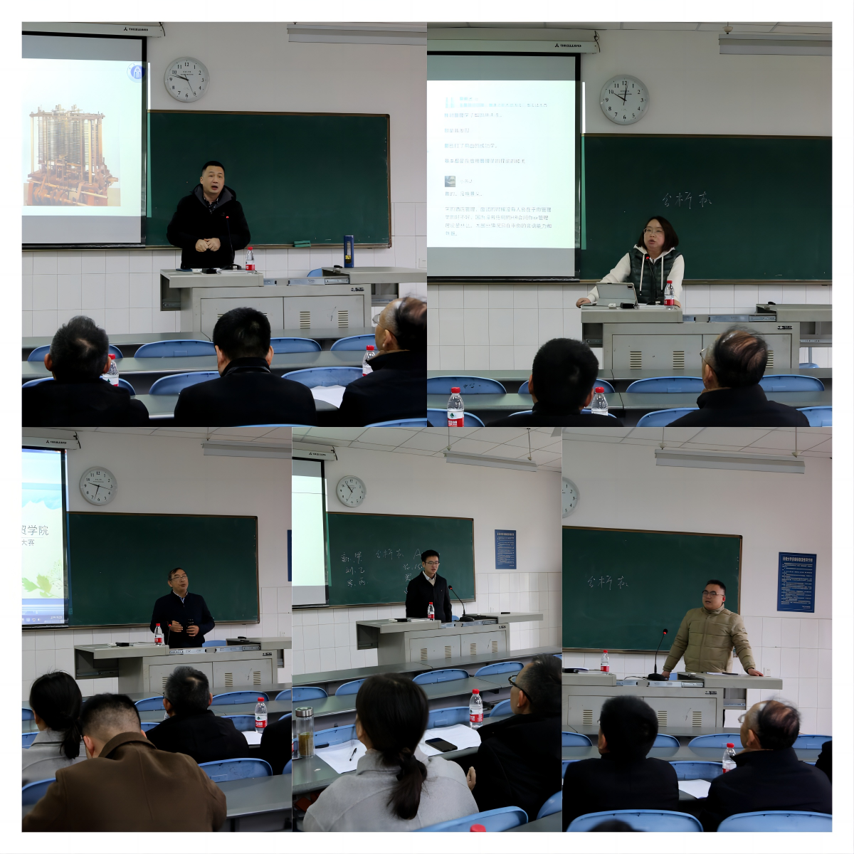 参赛教师结合教学大纲与教学实践进行教学设计创新汇报并进行现场教学。比赛中,杜治国老师详细讲解了采用项目式的教学方法,以提高员工对课程学习的兴趣;秦颖颖老师提出用科学管理研究方法,让员工有意识将科学管理的优秀思想纳入个人发展;姚文老师以多方面专业案例的授课形式,让员工充分掌握专业知识;张麒麟老师采用课堂讨论的形式,注重学术实践,不断优化员工的学习状态;周佳宁老师提出课程架构全面整合,让员工掌握的知识得到升华。比赛充分体现了各位参赛教师对课程建设方法、路径和手段的深入思考,不断创新教学设计,丰富教学视野,提升教学效果。