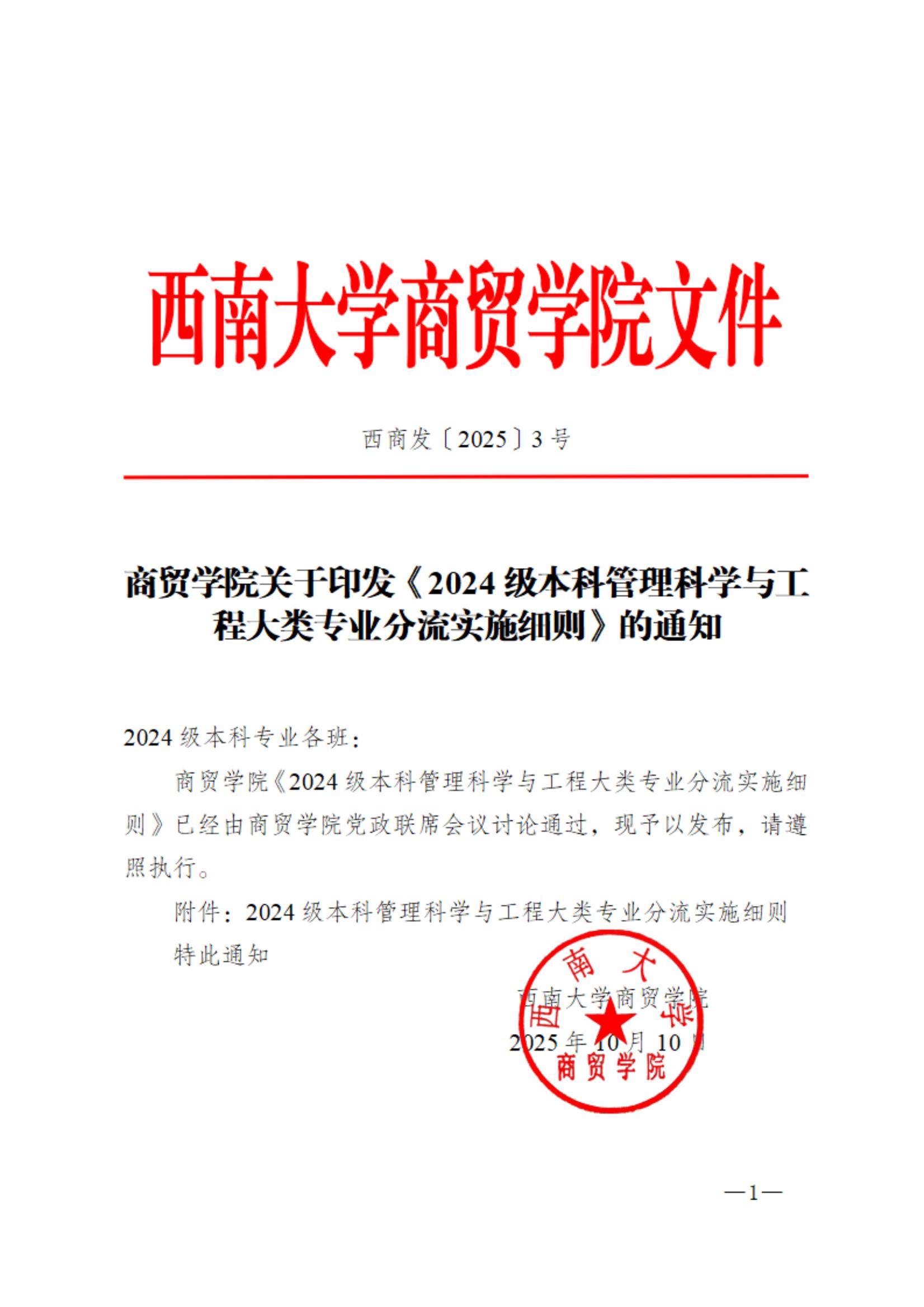 k1体育关于印发《2024级本科管理科学与工程大类专业分流实施细则》的通知