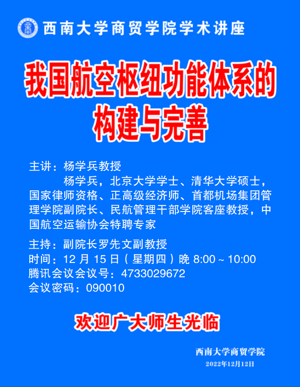 讲座:我国航空枢纽功能体系的构建与完善