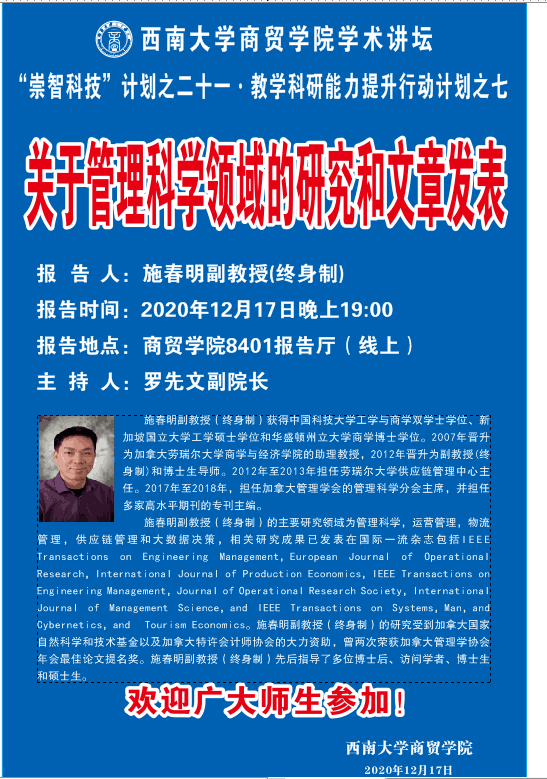 讲座:关于管理科学领域的研究和文章发表
