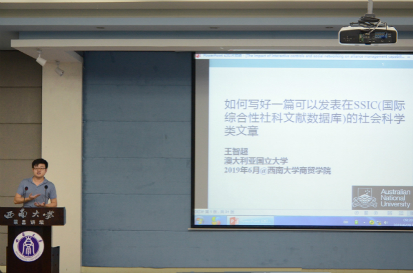 6月20日上午,王智超博士在2211报告厅为学院员工主讲了以“如何写好一篇可以发表在SSIC的社会科学类文章”为主题的讲座。他以一篇优秀论文为案例,列出了论文的三个主要论据和论文运用的各类研究方法,并为同学们详细地分析了论文三大论据之间的逻辑关系。