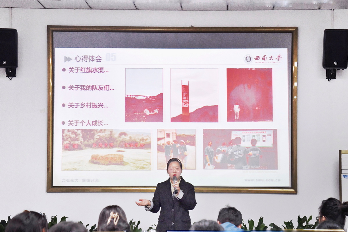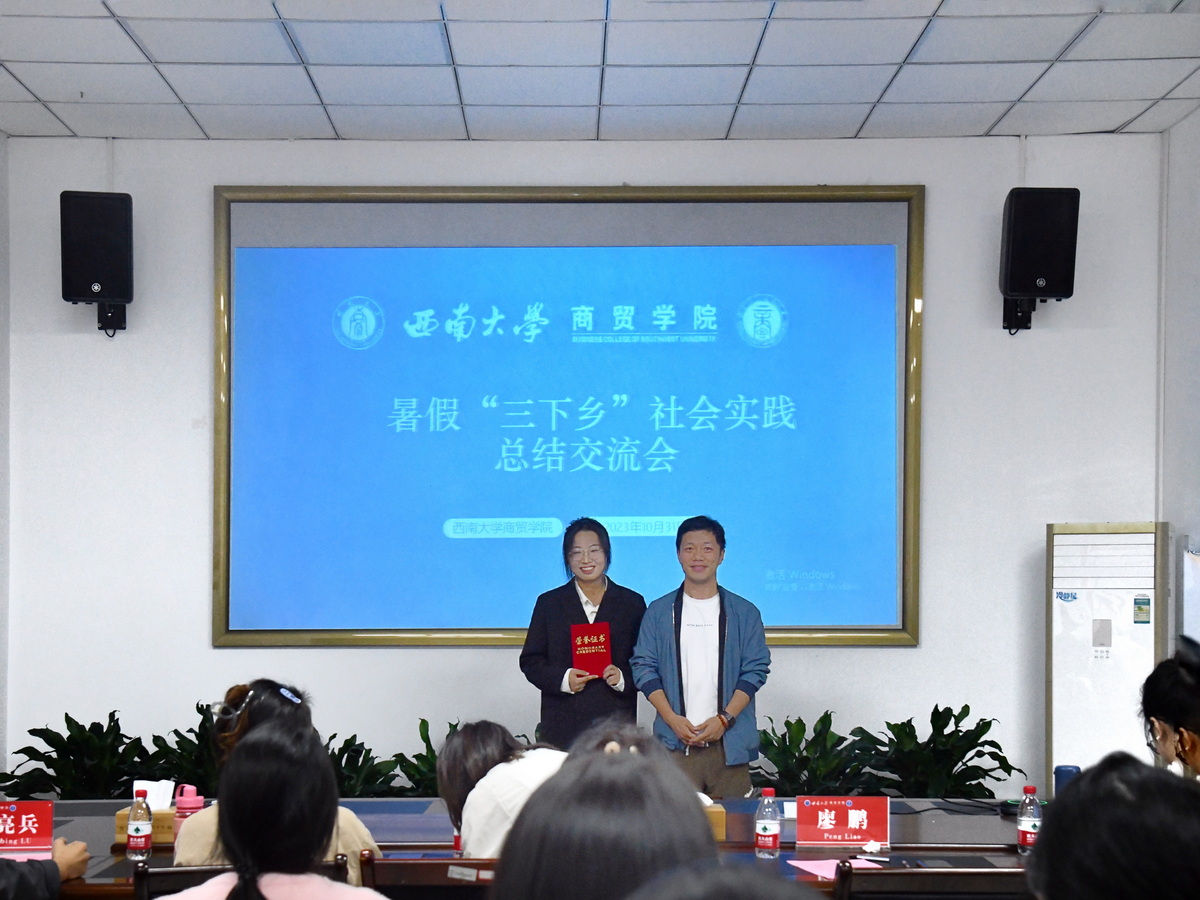 此次交流会首先由各小分队代表依次上台发言,向在场嘉宾及同学介绍所属分队在暑假“三下乡”社会实践活动中的精彩瞬间与成长收获:各小分队与当地村委会及相关乡村振兴企业进行交流,走进现代乡村,结合当地文化,发扬不怕苦,不怕累的精神,为乡村振兴尽一份自己的绵薄之力。最终,四川宜宾安石小分队荣获活动一等奖。